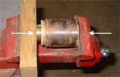 both ends of the assembly with a wood blocks, soft jaw vice, or other
